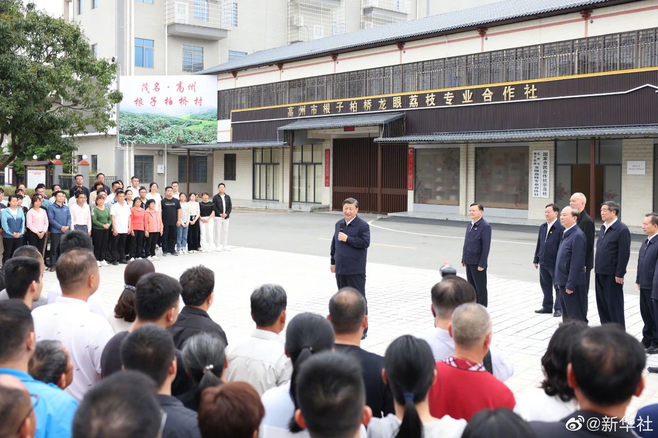 11日下午,习近平总书记来到广东省茂名市,走进高州市根子镇柏桥村。他先后察看荔枝种植园、农业合作社,对乡亲们靠发展荔枝特色产业推动乡村振兴表示肯定。习近平指出,这里是“荔枝之乡”,发展荔枝种植有特色有优势,是促进共同富裕、推动乡村振兴的有效举措,农村特色产业前景广阔。