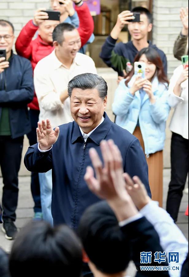 2021年3月24日,习近平在福州三坊七巷历史文化街区考察时,向游客和市民招手致意。新华社记者 燕雁 摄