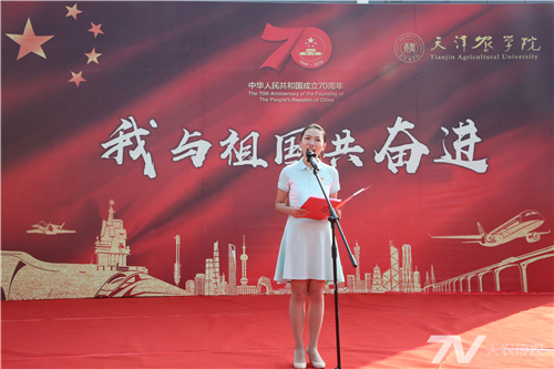 校学生会学生代表崔创辉表示:“置身于今天的庆祝活动,我真切的感受到全国上下团结一心,在党的领导下,豪迈走向了美好新时代的壮丽景象。爱党爱国爱农爱校,我们要与祖国同呼吸,与时代共奋进!”