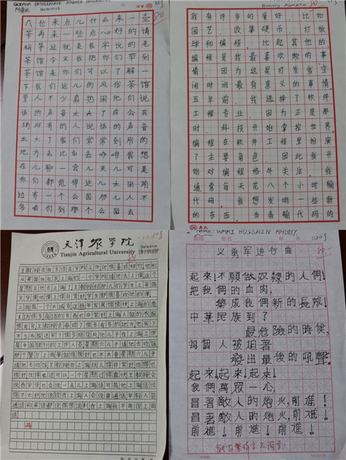 本次大赛为硬笔书法大赛,计算机与信息工程学院及人文学院的国际学生踊跃投稿,共收到了44幅参赛作品,经过专家评审,最终评出一等奖1名,二等奖2名,三等奖3名。