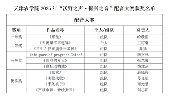 比赛现场,各支队伍以饱满的热情和精湛的技艺展现了声音艺术的无限可能。配音表演精彩纷呈,令人印象深刻。上半场与下半场的作品涵盖多元题材,从经典动画重现到乡村振兴故事,从热血爱国情怀到展现发展步伐,配音者们用富有感染力的声音,赋予每个作品鲜活生命力,为观众带来了一场绝佳的视听盛宴。这些作品不仅展现了同学们的声音才华,更传递了青年一代对家国情怀的深刻理解。乡村振兴需要这样的声音——有温度、有力量、有希望。