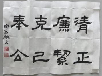 这幅隶书作品书 “奉公廉洁 公正严明”,笔力沉稳,既具古朴艺术美,又颂廉洁公正之德,启人守清正底色。(督查室供稿;文字:马谨;编辑:张倩;审校:田健 赵斌)
