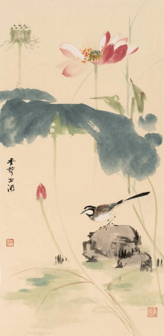 以清雅笔墨绘就荷之风姿,荷花出淤泥而不染,如廉洁之士守正不阿;荷叶清翠坦荡,似清正品格光明磊落。画中飞鸟立于石上,更添清逸之态,整体画面借荷之神韵,颂廉洁之德,赞君子如荷。