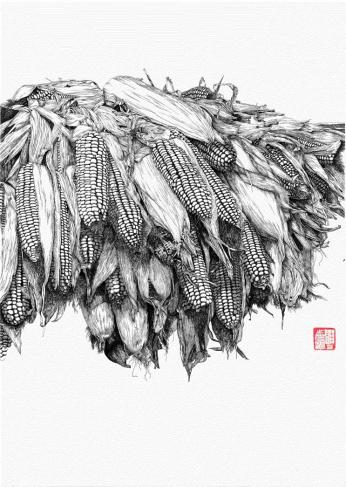 以细腻的黑白线条,刻画了一挂饱满的玉米。玉米籽粒颗颗分明,如廉洁之心坦荡无私;玉米外皮质朴无华,似清正之姿不事雕琢。它借玉米的朴实与丰盈,隐喻廉洁奉公者的坚守。