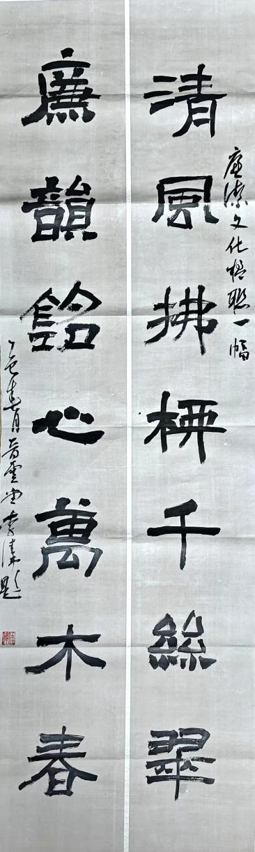 对联以古朴的书风彰显廉洁意蕴。“清风”“廉韵” 传递清正廉洁之风,“千丝翠”“万木春” 喻廉洁文化滋养万物、焕发生机。笔墨苍劲,既具书法艺术之美,又颂清风廉韵之韵。