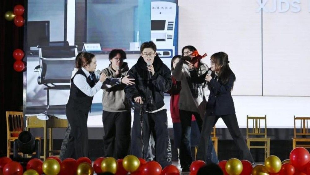 歌曲类节目则以声传情、浸润心灵。郑世艳老师带来的独唱《后来》,旋律温柔婉转,将歌词中的细腻情愫与人生感悟娓娓道来。节目不仅引发观众对青春岁月的怀旧共鸣,更以含蓄的表达引导青年学子树立正确的爱情观与价值观,懂得珍惜时光、坚守责任。教师代表合唱的《倔强》,以激昂的节奏诠释了“逆风飞翔、与众不同”的青春态度,传递出永不言弃、奋勇拼搏的精神力量,激励学子们要勇于奋斗。两院全体学生会成员身着统一服装带来的歌曲串烧,串联起晚会的美好瞬间,既展现了taptap点点学生工作的扎实成果,更是文化育人、集体主义教育的生动实践,让爱的暖流在现场久久回荡。