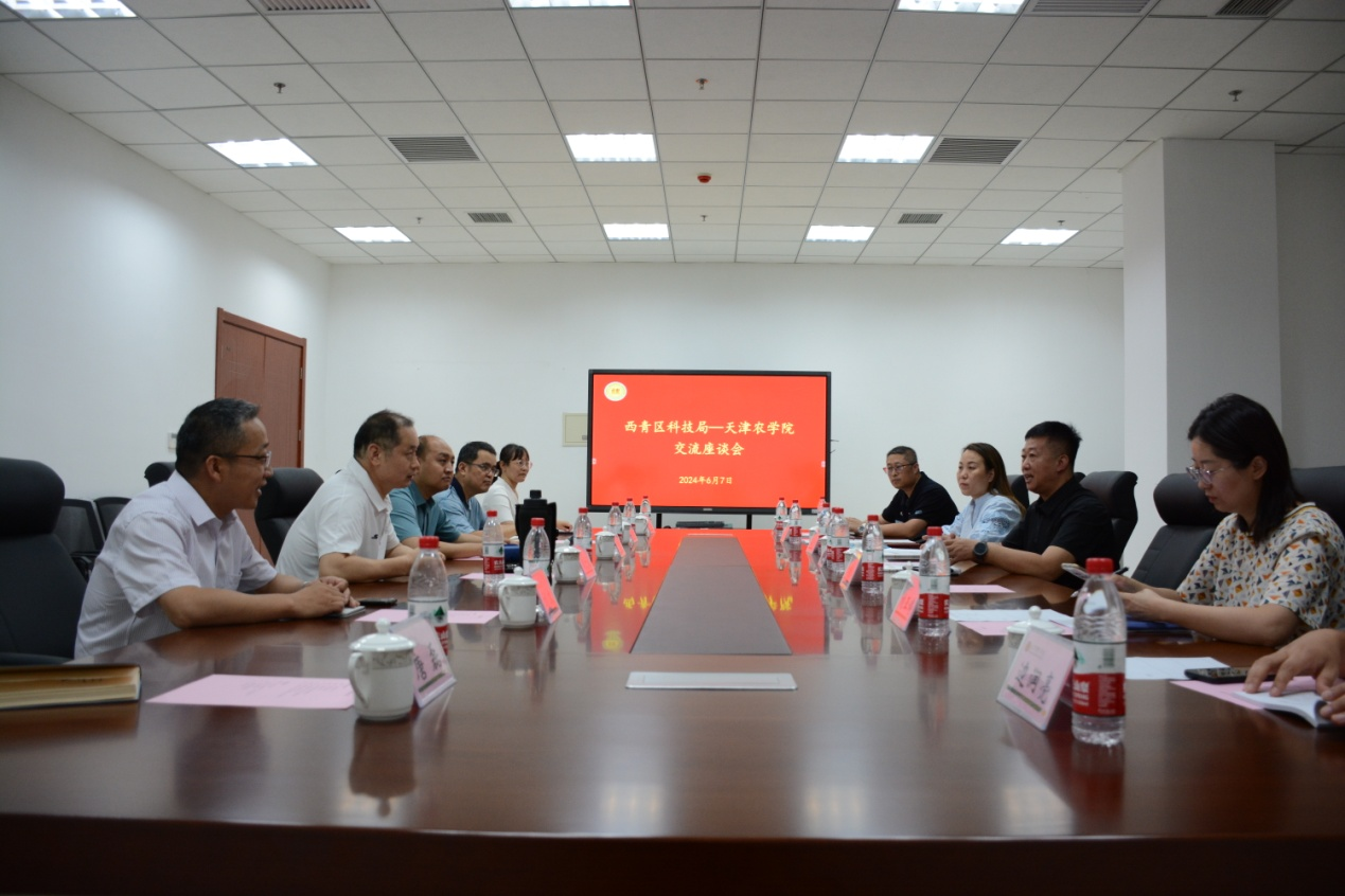 近日,西青区科技局局长梁红升一行来校与科技处进行座谈交流。