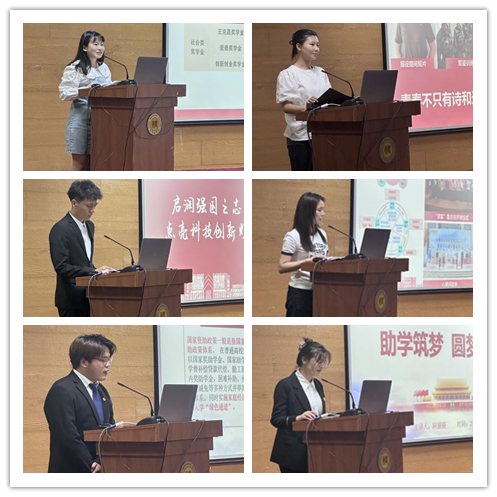 本次巡讲活动邀请到天津师范大学“薪火相传,资助益梦”宣讲团成员张睿,天津理工大学“雏雁助飞”宣讲团成员齐美成、张益彬、魏娜及taptap点点资助宣传大使武祖森、阿丽娅担任宣讲嘉宾。宣讲嘉宾围绕高校学生资助政策、本校资助育人工作特色与成果、个人受资助经历与蜕变成长等方面进行宣讲。同学们的精彩分享充分展现出了当代大学生逐梦起航、争做榜样的良好精神风貌。
