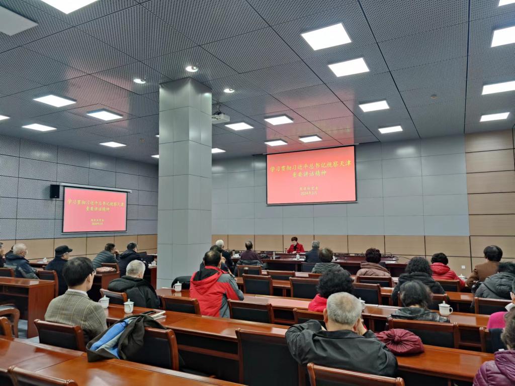 会议指出,学习宣传贯彻习近平总书记视察天津重要讲话精神是当前和今后一个时期首要政治任务。要深入领会、全面贯彻新时代新征程习近平总书记对天津工作的总体要求,贯彻市委和学校党委要求,立足老同志实际,坚持以理论武装为引领、以组织规范为支撑、以作用发挥为目标,持续引导广大老同志坚持不懈用党的创新理论凝心铸魂,组织老同志将所学所思所悟转化为发挥作用的强劲动能,“牢记嘱托,勇担使命”,为助力党和国家事业发展继续发光发热。