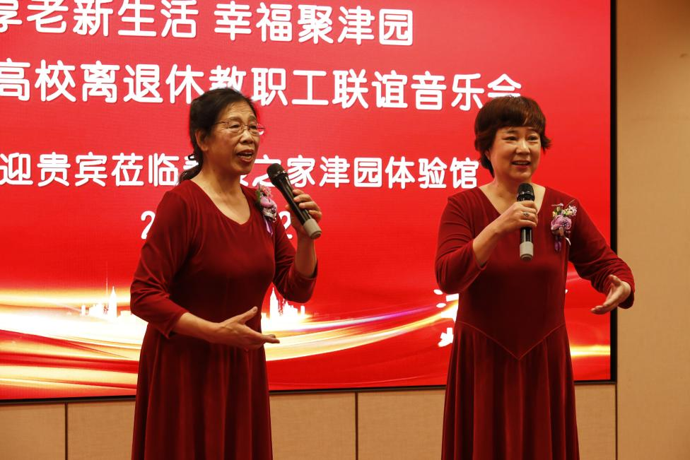 欢歌笑语辞旧岁,喜庆祥和迎新年。12月28日,联合天津大学、南开大学等6家高校和科研单位举办了“庆元旦 迎新年”高校离退休教职工联谊音乐会。各高校老同志欢聚一堂,载歌载舞,共贺新年。taptap点点退休教师骆建霞、袁友芹两位教授演唱的歌曲《雁南飞》,以明亮的旋律开篇,带领我们走近雁阵飞过山河,展翅南飞穿越云霄的场景,唱出了对伟大祖国的热情赞颂和人民对幸福美好生活的赞美,赢得了现场观众阵阵热烈掌声。