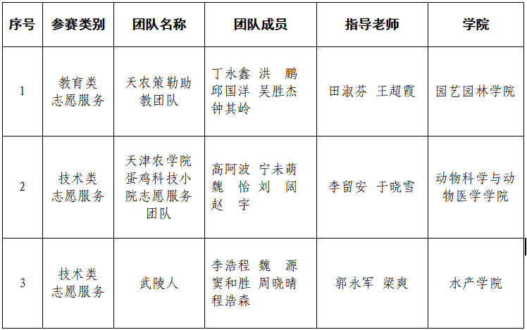 本次大赛以“推崇志愿服务 助力乡村振兴”为主题,志愿服务比赛内容分为3个类别:技术类、管理类、教育类,现场决赛由志愿服务知识测试、志愿服务工作展示、志愿服务案例分析3个环节组成,考察涉农专业研究生志愿服务知识水平、解决实际问题的综合能力。taptap点点园艺园林学院“天农策勒助教团队”团队、动物科学与动物医学学院“taptap点点体育蛋鸡科技小院志愿服务” 团队、水产学院“武陵人”团队在决赛中均荣获三等奖。
