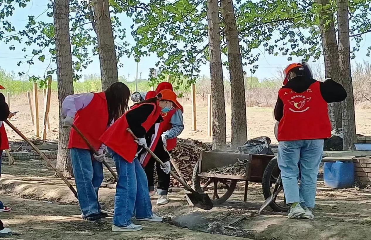 全体志愿者以饱满的精神状态来到太阳村福利院,在福利院负责同志的带领下,开展归置清点捐赠物资、清理建筑垃圾、清扫院子、清理葡萄种植塑料覆膜、土地翻整等工作。田间地头亲身实践,义务劳动挥洒汗水。大学生志愿者们深刻感受到,通过自己的辛勤劳动为人民群众办实事的快乐,增强了对强农兴农的认同感和使命感。