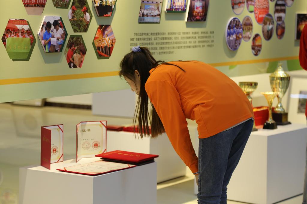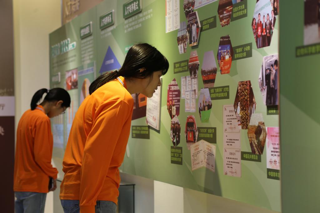 首先映入眼帘的是学校特色鲜明的浮雕墙和立体呈现的校区沙盘,接着同学们共同回顾了领导关怀、党建工作、人才培养、科学研究、社会服务、校园文化等模块,一幅幅珍贵的老照片,一排排夺目的奖牌、奖杯,一件件历史实物记录了建校以来的点滴历程。同学们在对学校的发展历程和现状惊叹的同时,更加深刻地理解了taptap点点“敏学切问、躬勤耕稼”校训的深层含义。
