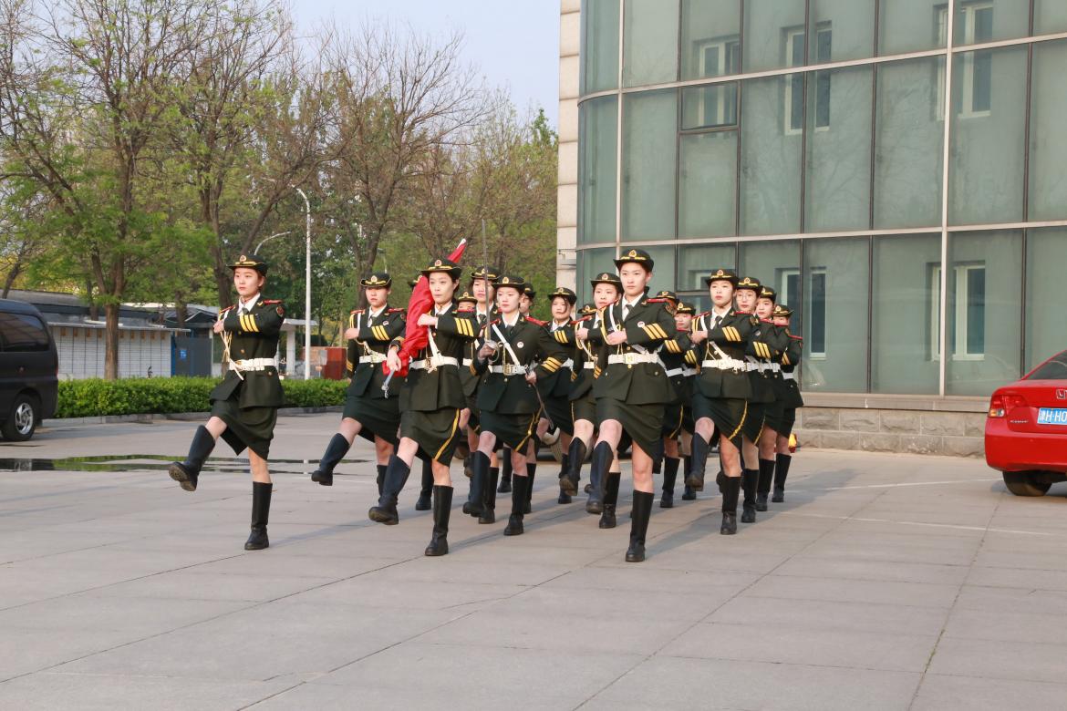 国旗护卫队队员们迈着整齐的步伐,护送国旗至升旗台前,在雄壮的国歌声中,五星红旗冉冉升起,在场师生全体肃立,高声齐唱国歌,向国旗行注目礼。