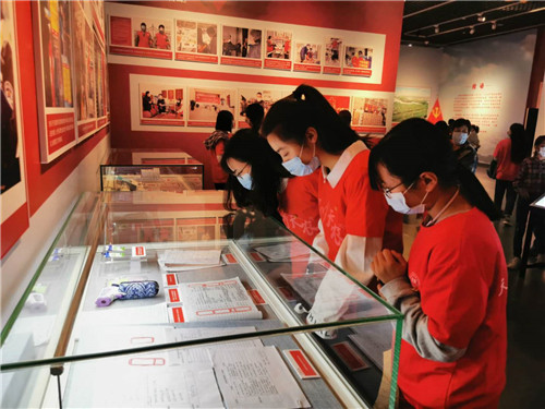 “国家荣誉——中国女排精神展”全方位、多角度展现了中国女排40年来勇夺十次世界冠军的光辉历史和拼搏之路,生动鲜活地呈现了很多感人故事和特别场景。参观过程中,团员青年重温那一幕幕心潮澎湃、热血沸腾的夺冠时刻,再一次感受到了女排精神的强大力量。