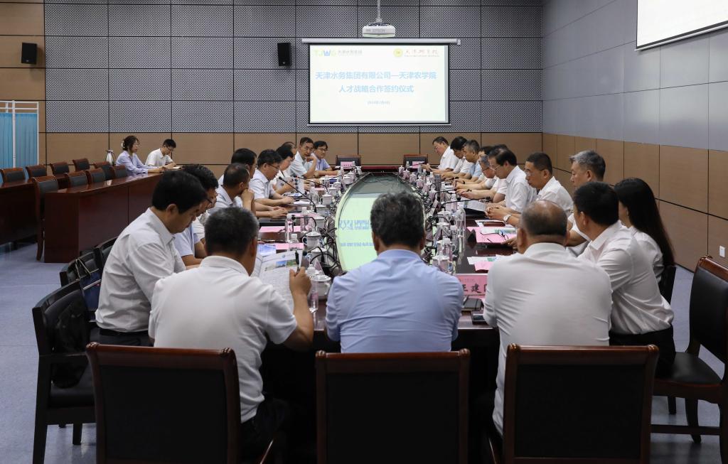 陈健对学校在全面推进乡村振兴、巩固拓展脱贫攻坚成果、助力天津农业高质量发展方面作出的贡献表示高度赞赏。他表示,水务集团将立足自身资源禀赋,积极为学校搭建优质实训平台、提供良好就业渠道,也希望学校进一步发挥高校在科技创新中的主力军作用,紧密围绕智慧水务建设、电气自动化、水文与水资源、水利水电工程等水务相关产业,以及人工智能等新兴产业的关键技术、核心工艺,助力水务集团提升科技研发水平,加速科研成果转化,共同推动新质生产力发展。他指出,此次战略合作协议的签订对深化双方优势互补、合作共赢具有里程碑意义。希望双方不断拓展合作的广度和深度,共同开启合作共赢新征程,合力绘就合作发展新蓝图,打造我市校企合作的新典范。