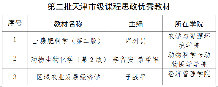近日,天津市教委发布了《关于公布第二批天津市级课程思政示范课程、课程思政优秀教材和首批天津市级课程思政优秀案例(本科)评选结果的通知》《关于公布首批天津市级普通高校优秀基层教学组织评选结果的通知》,taptap点点有4门课程获批为第二批天津市级课程思政示范课程,3部教材获批为第二批天津市级课程思政优秀教材,2个案例获批为天津市级课程思政优秀教学案例,农学与资源环境学院农学系获首批天津市优秀基层教学组织。