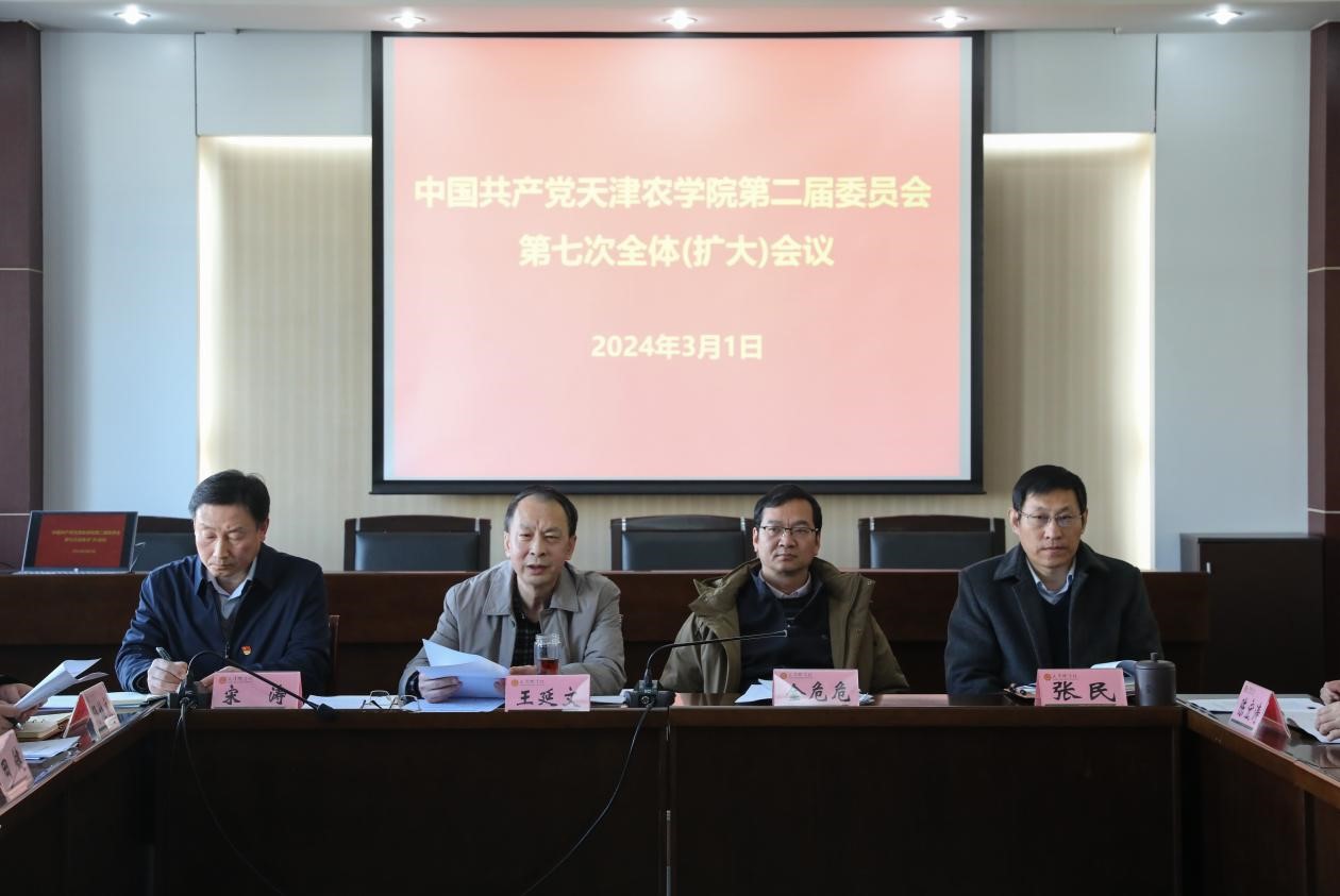 全会强调,2024年是中华人民共和国成立75周年,是实现学校事业发展“十四五”规划目标任务的关键一年。全校上下要以习近平新时代中国特色社会主义思想为指导,深入学习贯彻党的二十大精神,认真贯彻落实习近平总书记关于教育的重要论述和视察天津重要讲话精神,坚持党对学校工作的全面领导,全面深化综合改革,推动高质量内涵式发展;要立足基点、瞄准靶点、抓住节点、挖掘亮点,对标对表高水平农业大学建设目标,把握发展机遇,找准努力方向,抓住关键环节,突出特色亮点,一个目标接着一个目标努力,一项工作接着一项工作推进,善学善思,善作善成;要服务“国之大者”,以国家重大战略和区域经济社会发展需求为导向,整合学校人才、智力、平台等优势资源,在人才培养、科学研究、社会服务、文化传承、对外交流等工作上下真功夫、练苦功夫,努力在新时代新征程中彰显“天农之为”。