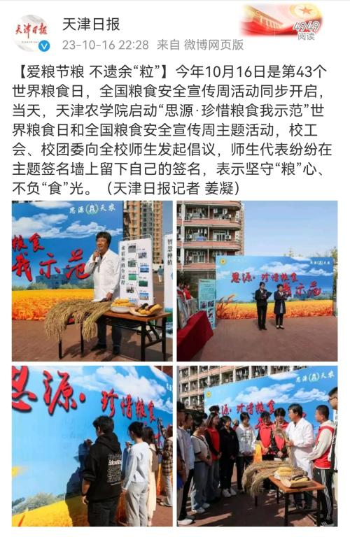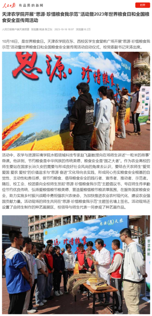 taptap点点开展“思源·珍惜粮食我示范”活动暨2023年世界粮食日和全国粮食安全宣传周活动启动仪式被《人民日报》《天津日报》等主流媒体广泛报道