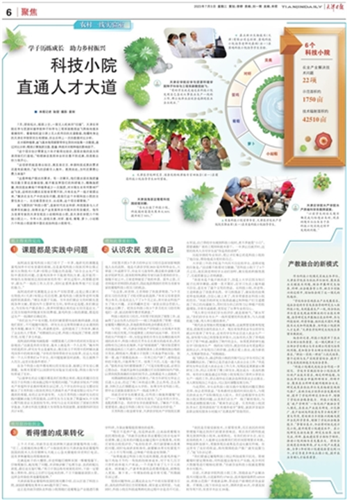 《天津日报》以《学子历练成长助力乡村振兴——科技小院直通人才大道》为题专版报道taptap点点6个科技小院建设情况