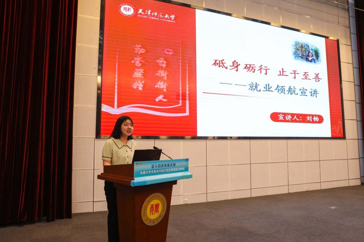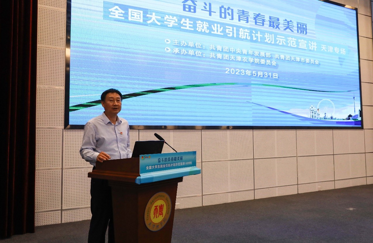 阚宝奎为天津市就业引航宣讲团授旗,张磊、宋涛为天津市就业引航宣讲团指导教师颁发聘书。