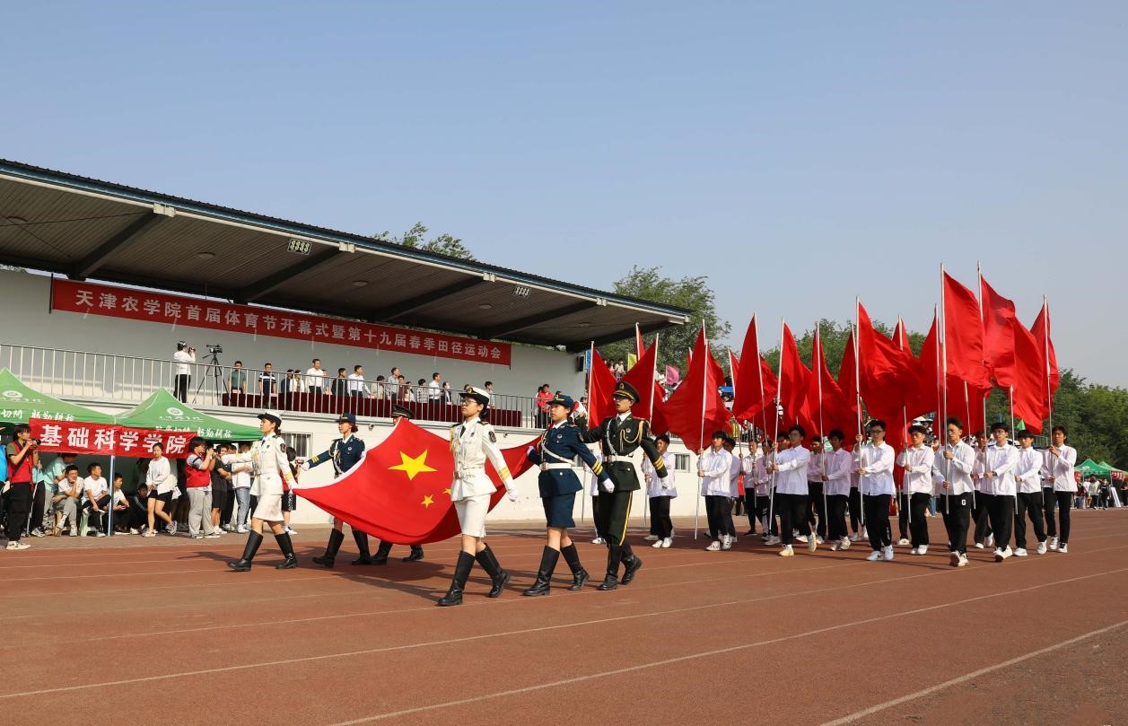 在庄严雄壮的国歌声中,鲜艳夺目的五星红旗冉冉升起,taptap点点首届大学生体育节暨第十九届春季田径运动会拉开序幕。