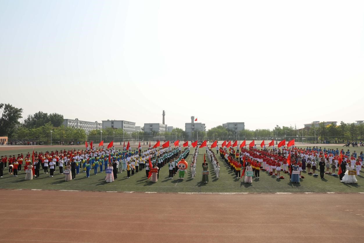 王延文宣布运动会开幕。金危危致开幕词。经济管理学院庞尔琦同学代表全体运动员宣誓,体育教学部张秀丽老师代表全体裁判员宣誓。