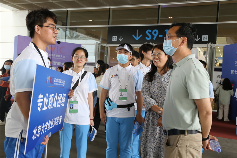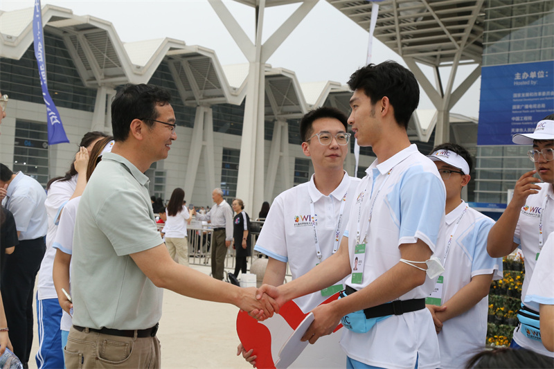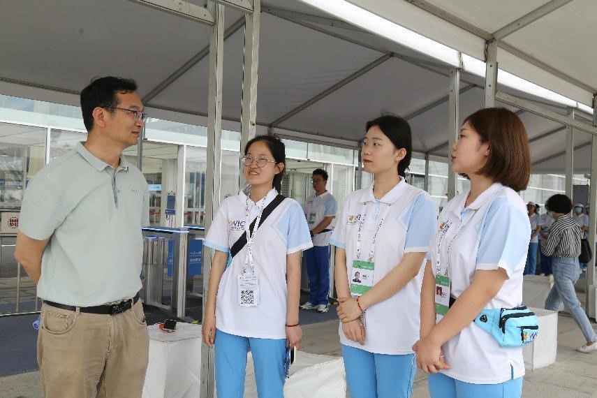 5月19日下午,校党委常委、副校长(主持工作)金危危一行到国家会展中心,亲切看望慰问taptap点点第七届世界智能大会的青年志愿者。