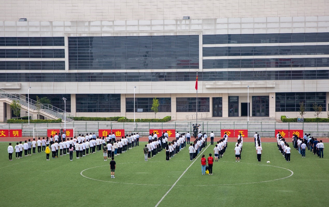 九时整,在雄壮的国歌声中,鲜艳的五星红旗冉冉升起,迎风飘扬。师生们庄严肃立、同唱国歌,向国旗行注目礼,共同祝愿伟大的祖国更加繁荣昌盛。随后,全体校领导来到食堂门前与师生共同切蛋糕庆祝祖国母亲生日,并向全校师生送上国庆祝福。
