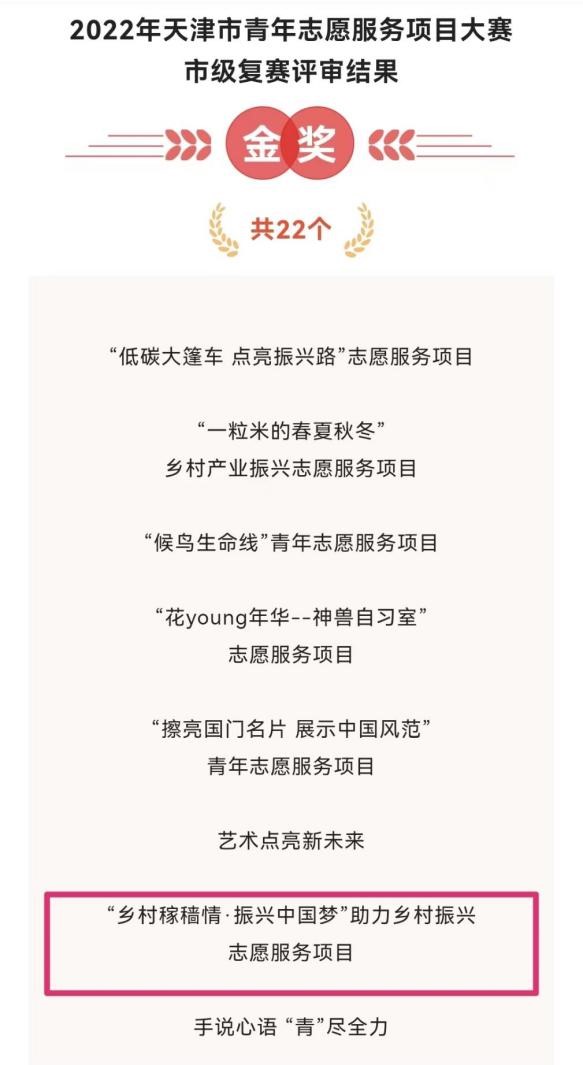 9月9日,天津市青年志愿服务项目大赛落下帷幕,taptap点点“乡村稼穑情·振兴中国梦”助力乡村振兴志愿服务项目荣获2022年天津市青年志愿服务项目大赛金奖,这是taptap点点参赛历史上的最好成绩。