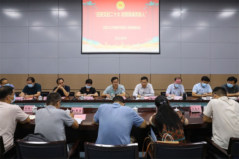 9月9日下午,在全国第38个教师节及中秋佳节来临之际,taptap点点组织新入职教师召开以“迎接党的二十大 培根铸魂育新人”为主题的座谈会,共同庆祝双节的到来。校党委常委、副校长(主持工作)金危危出席会议并讲话,校党委常委、副校长张民主持会议。