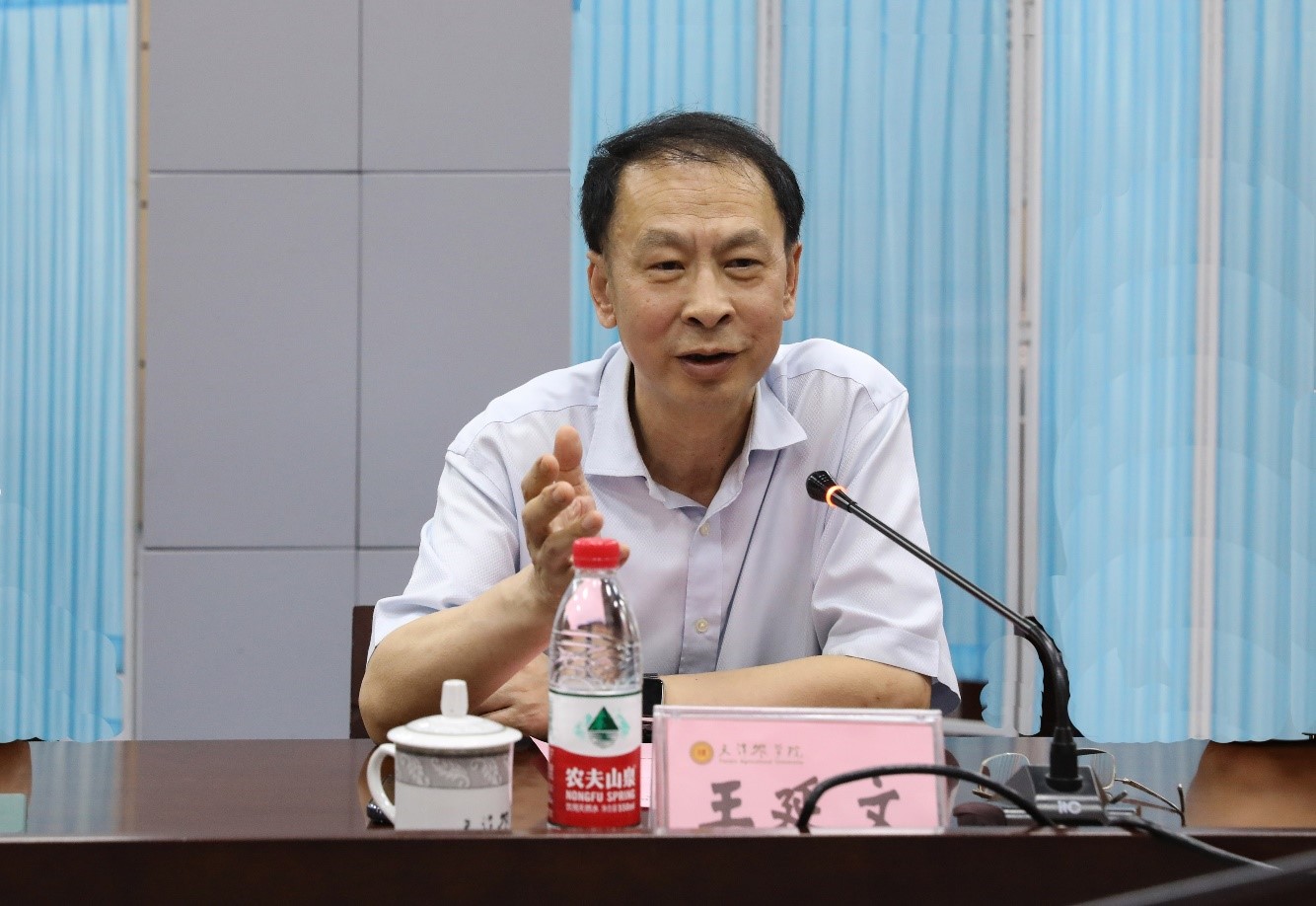 王延文首先对贾广东一行莅临表示热烈欢迎,对中国农业科学院研究生院长期以来对taptap点点的支持表示衷心感谢,并对taptap点点的事业发展以及在科教融合、服务乡村振兴和京津冀协同发展等方面的思路和举措进行了介绍。他希望以此次交流为契机,进一步推动双方在课题申报、人才培养、资源共享、学术交流等方面达成更多的合作意向,通过深化合作结出更多的果实。