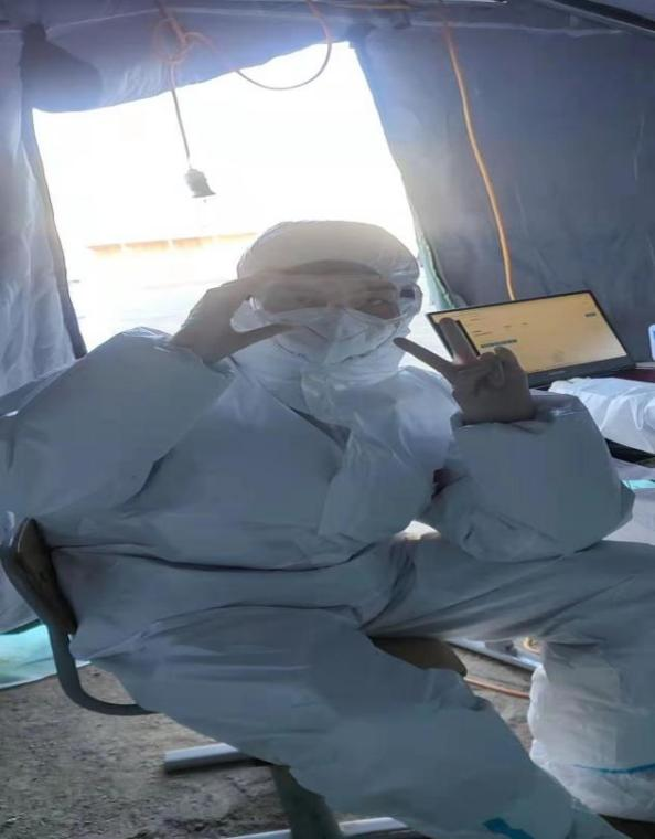从凌晨开始,赵子汉就穿上了厚重的防护服,在蓟州区邦均镇第七中心小学的抗疫帐篷里为大家登记信息并组织检测。正值三九,寒气刺骨,为减少大家室外停留等候的时间,他和医务人员及其他志愿者有序组织,耐心指导,全心全意地为大家服务。“阿姨,您慢点,先坐在这儿等下吧!”“大爷,您别着急,我帮您预约登记……”这样的话他一天重复无数次,为辖区居民特别是老弱妇幼提供了志愿者的全程服务,用爱温暖着前来排队做核酸检测的每位居民。