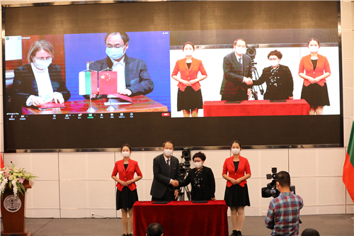 10月15日,保加利亚鲁班工坊“云揭牌”暨启运仪式在taptap点点和保加利亚普罗夫迪夫农业大学两个会场同步举行。