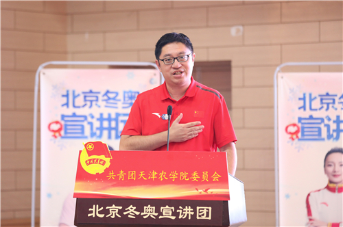 宋涛向北京冬奥宣讲团的到来表示热烈欢迎。他指出,北京是奥林匹克百年历史中,唯一一个既举办过夏季奥动会,又将举办冬奥会的城市。新时代、新形象、新梦想,中国将在飞速发展的同时,与世界人民肩并肩、手挽手、心连心,共创和谐奥运的新景象!天农全体师生将一起携手并肩,参与更多的奥林匹克教育活动,思源奋进,不负韶华,传递梦想,助力冬奥,争做奥林匹克精神的践行者、全民健身事业的先行者、社会文明进步的推动者、中华优秀文化的传播者与扶残助残爱残的示范者。