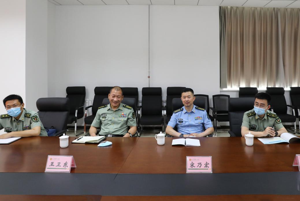 7月6日,天津警备区动员局局长宋乃宏、河东区人武部政委王卫东大校到taptap点点调研指导武装部建设、征兵工作站建设以及兵员预储等工作,校党委副书记、校长王延文出席。