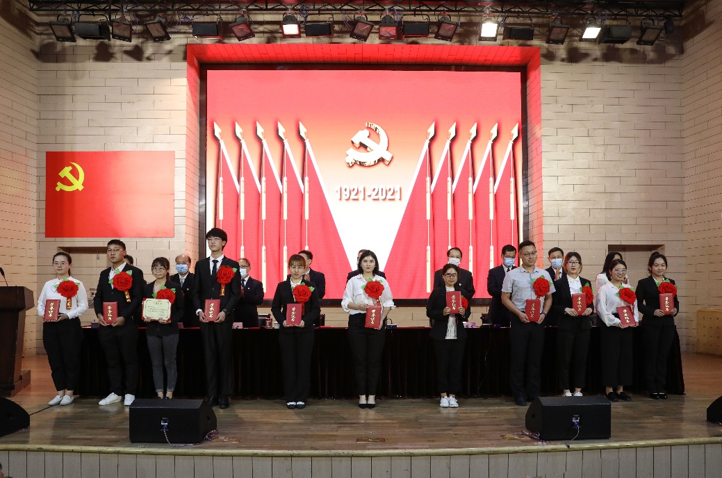 主席台领导向校级先进基层党组织、优秀共产党员、优秀党务工作者颁奖。