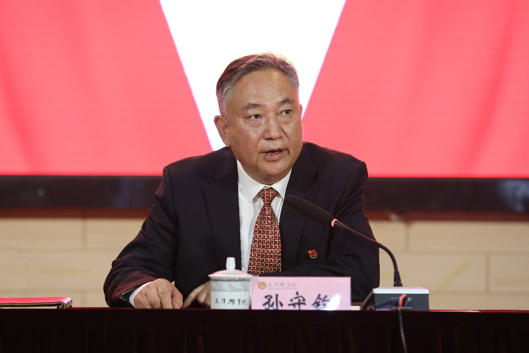 孙守钧指出,在庆祝我们党百年华诞的伟大时刻,我们扎实开展党史学习教育,正当其时。要深入学习领会习近平总书记关于党的历史的重要论述,充分认识开展党史学习教育的重大意义。要认真研读党史基本著作,全面了解中国共产党百年奋斗的光辉历程和历史性贡献。要充分发挥党的历史以史鉴今、资政育人的作用。在庆祝我们党百年华诞的伟大时刻,我们坚持和加强党的领导,进一步夯实党建基层基础,正当其时。要加强党的政治建设,自觉用实际行动践行“两个维护”。要加强党的思想建设,及时跟进学习党的最新理论。要加强党的组织建设,特别是要高度重视基层党建工作,充分发挥党支部的战斗堡垒作用。要加强党的纪律建设和作风建设,以铁的纪律、严的作风树立起新时代党员干部良好形象。在庆祝我们党百年华诞的伟大时刻,我们坚持“树正气、聚人气、鼓士气”,打造干事创业的党员干部队伍,正当其时。办好天农的事情,关键在党;落实党的决策部署,关键在人。党员干部要干事创业、争先有为。要有敢于担当、敢为人先的精神,要具备闯险滩、越关山的能力。党员干部要廉洁自律,不仅要廉洁,更要自律,清正廉洁和严于律己是党员干部的基本要求。在庆祝我们党百年华诞的伟大时刻,我们坚持以立德树人为根本、以强农兴农为己任,接续在希望的田野上建功立业,正当其时。要坚持立德树人的根本任务,发挥好taptap点点“一二三四五”思政工作体系作用,紧紧围绕“爱党、爱国、爱农、爱校”主题,全面加强思想政治教育,全面深化党史学习教育、推进“四史”教育,不断提升taptap点点思想政治工作效果。要牢记强农兴农的使命担当,创新人才培养模式,突出“新农科”建设,坚持“五育”并举,培养德智体美劳全面发展,富有“三农”情怀的高素质应用型人才。千秋伟业,百年正是风华正茂;征途漫漫,唯有奋斗方可前行致远。新时代、新征程,让我们从百年党史中汲取奋进的力量,坚持以立德树人为根本、以强农兴农为己任,为助力乡村振兴、建设高水平农业大学砥砺奋斗,为实现中华民族伟大复兴砥砺奋斗!
