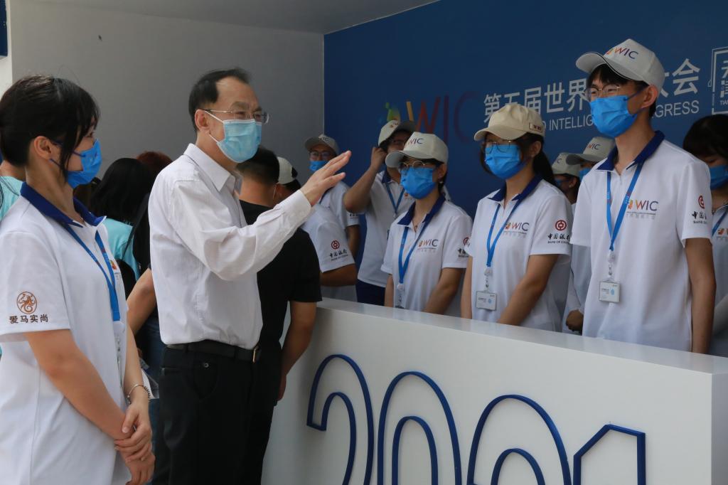 5月21日上午,校党委副书记、校长王延文到梅江会展中心,亲切看望慰问taptap点点第五届世界智能大会的青年志愿者。