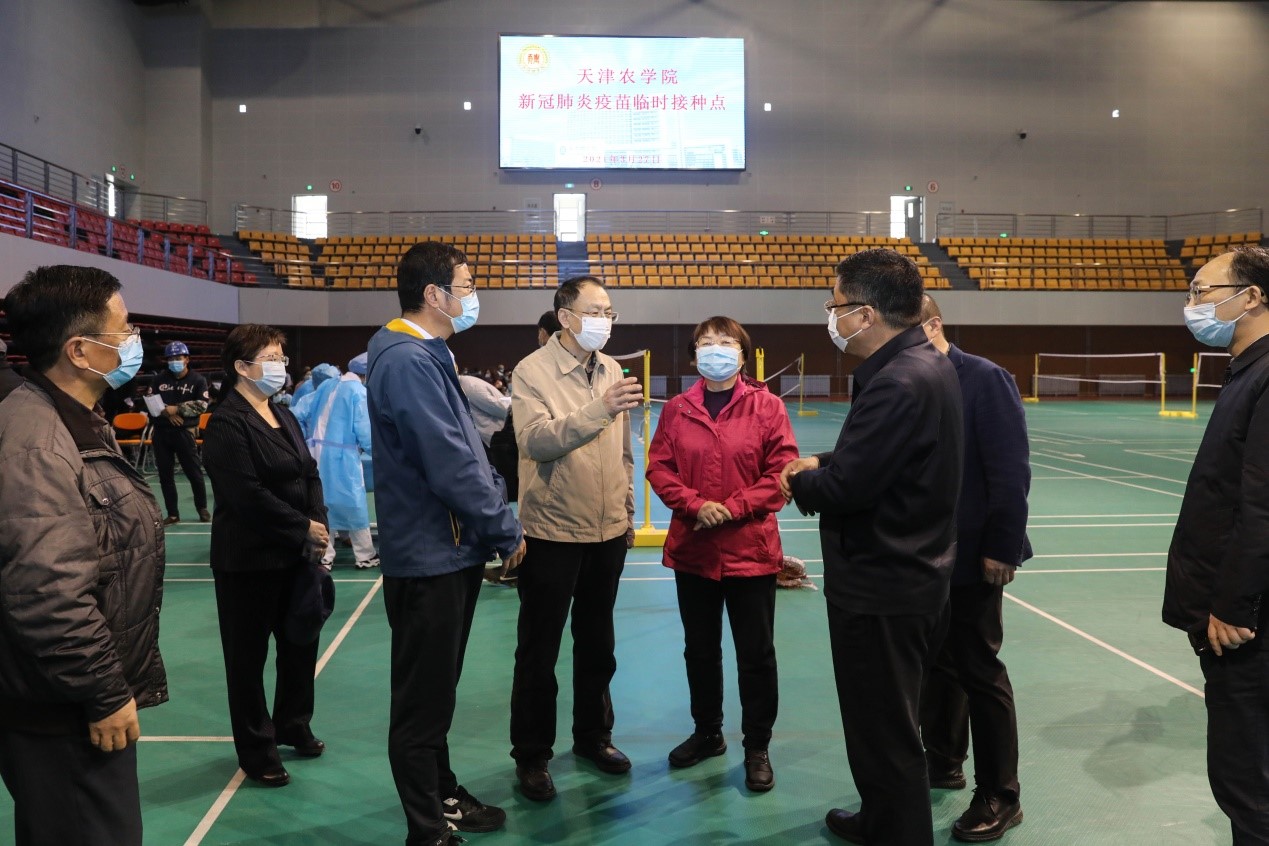 在疫苗接种工作过程中,西青区委书记李清等西青区领导到taptap点点东校区接种现场,看望慰问正在进行疫苗接种的工作人员和师生员工。