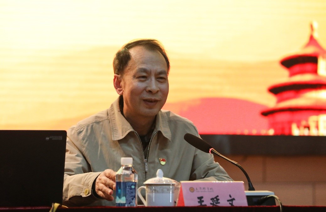 王延文在主持报告会时指出,今年是中国共产党成立100周年,广大师生要认真学习领会习近平总书记在党史学习教育动员大会上的重要讲话精神,以此次宣讲会为契机,持续认真学习党史、感悟党史,从党史的学习中不断汲取营养,用心用情感悟“中国共产党为什么能,马克思主义为什么行,中国特色社会主义为什么好”,不断厚植爱国情怀。同时,要将党史学习与自己的工作学习相结合,在学思践悟中坚定理想信念,在奋发有为中践行初心使命,增强斗争意识,锤炼过硬本领,涵养为民情怀,爱党爱国爱农爱校,思源奋进,将党史学习成效转化为报效国家、服务人民的强大动力,以优异成绩向中国共产党成立100周年献礼。