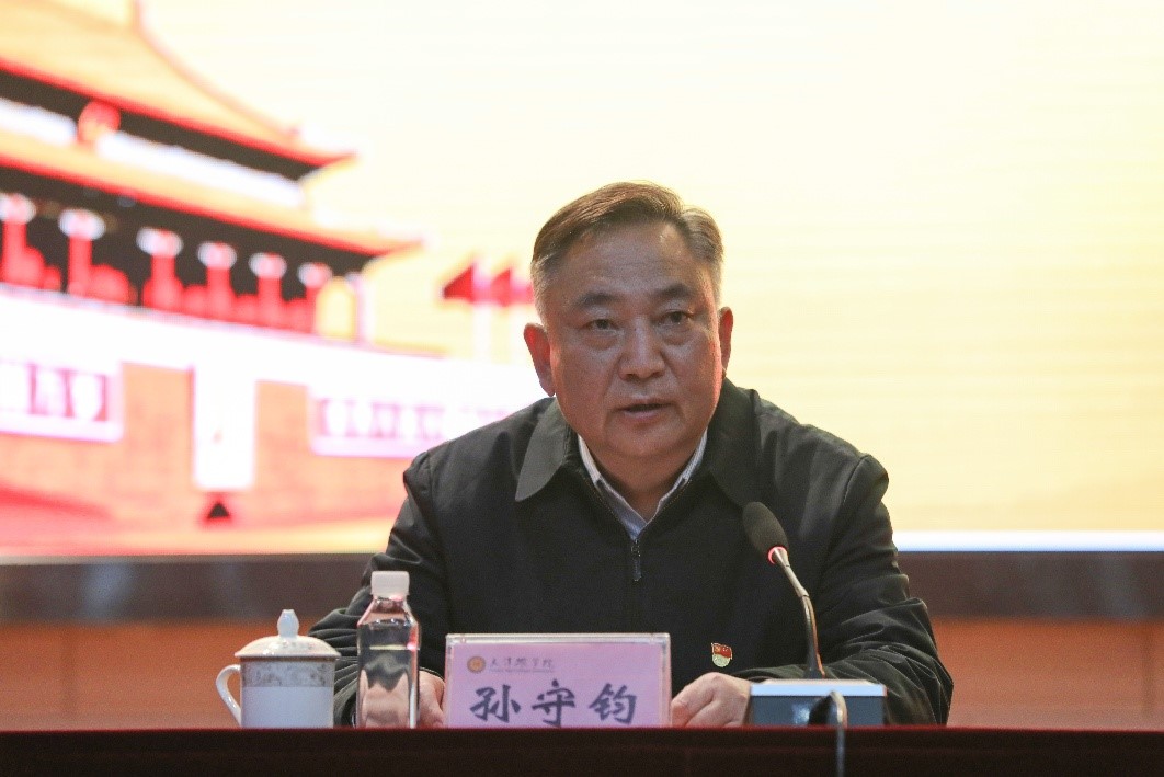 孙守钧要求,全校师生要坚决把思想和行动统一到习近平总书记重要讲话精神和党中央决策部署上来,扎扎实实地开展党史学习教育,坚决做到学史明理、学史增信、学史崇德、学史力行,坚决做到学党史、悟思想、办实事、开新局,通过全面系统深入的党史学习,厚植爱党、爱国、爱农、爱校情怀,达到“提正气、增活力、办实事、展新貌”的教育效果。要进一步深刻感悟党史学习的重大意义,进一步领会学习教育的目标任务,进一步增强“两个维护”的政治自觉,进一步筑牢人民至上的为民情怀,进一步勇担乡村振兴的历史重任,进一步强化学习教育的组织领导,聚天农之志、汇天农之力,共同书写中华民族伟大复兴的时代画卷,以优异成绩迎接中国共产党成立100周年。