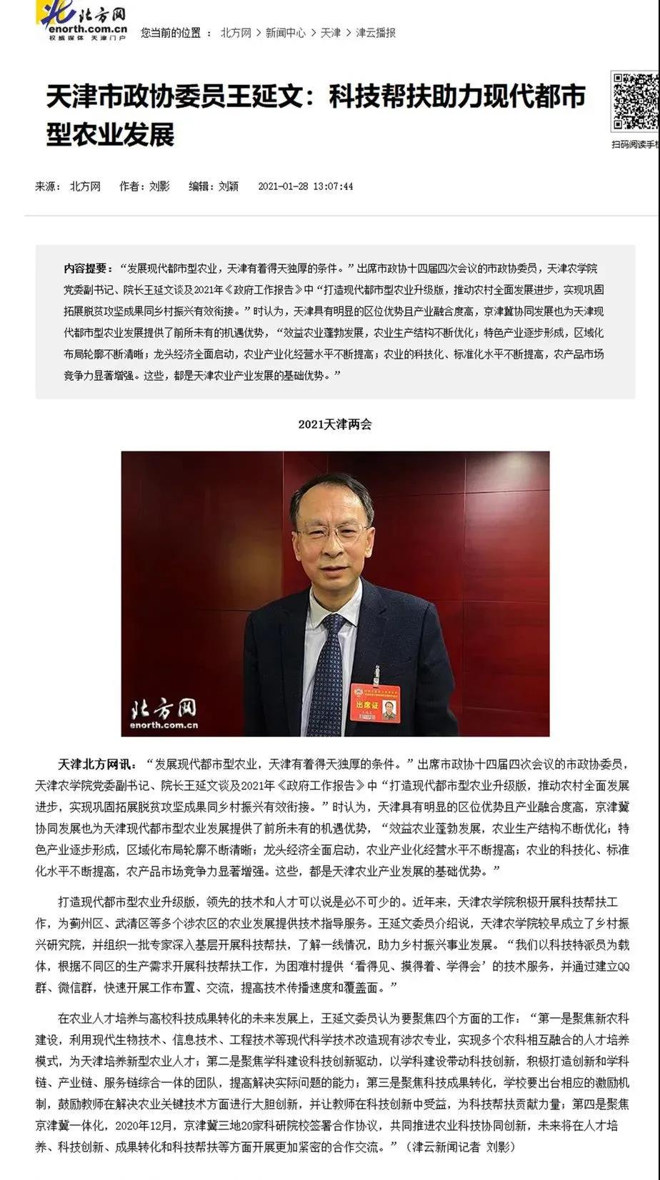 2021年1月28日北方网讯,市政协委员、taptap点点党委副书记、校长王延文教授出席市政协十四届四次会议,并就农业人才培养与高校科技成果转化的未来发展等问题接受了记者采访,原文如下: