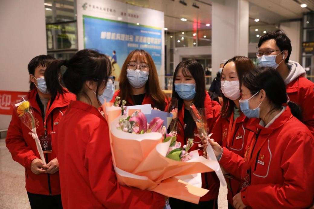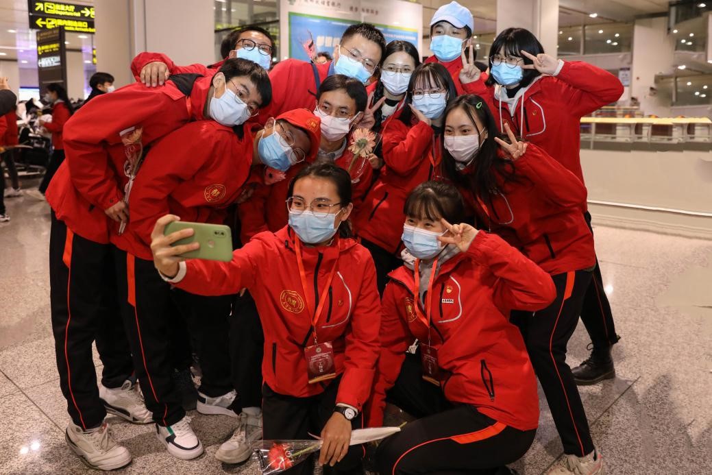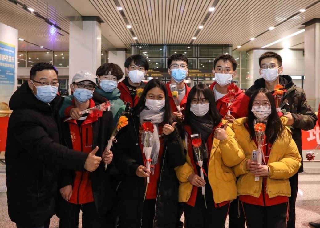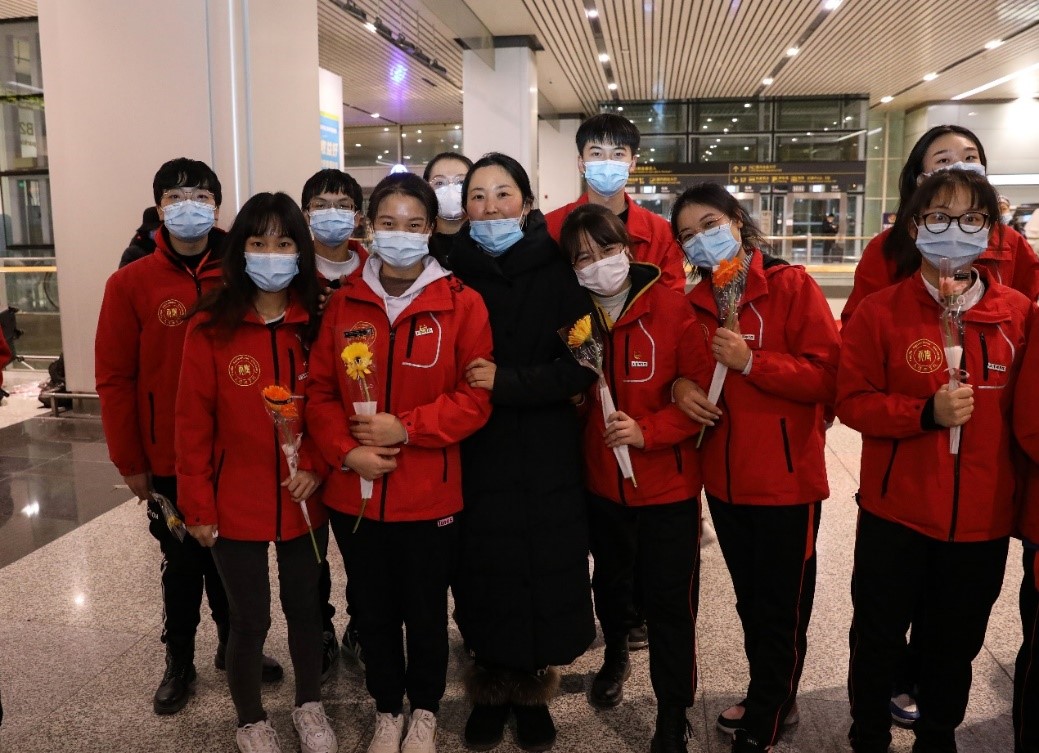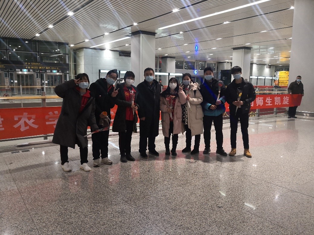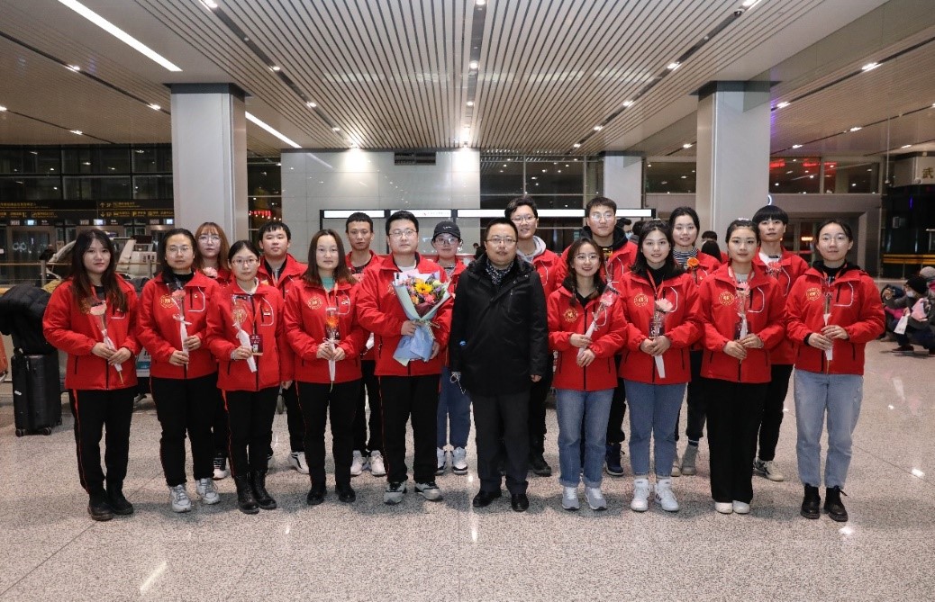 2020年12月30日晚,taptap点点赴新疆和田地区实习支教的140名师生带着津和两地人民的深情厚谊,圆满完成各项任务平安抵达天津。按照学校党委安排,校党委副书记宋涛带队前往天津滨海国际机场迎接载誉而归的实习支教团师生,党办、组织部、宣传部、学工部、研工部、校团委及各学院的负责同志一同到机场迎接。