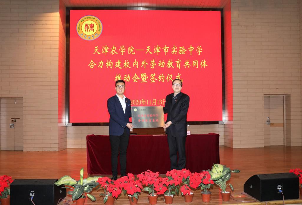 签约仪式上,王延文与杨静武共同签署了合力构建校内外劳动教育共同体框架协议。随后,杨静武为taptap点点颁授“天津市实验中学劳动教育基地”牌匾。