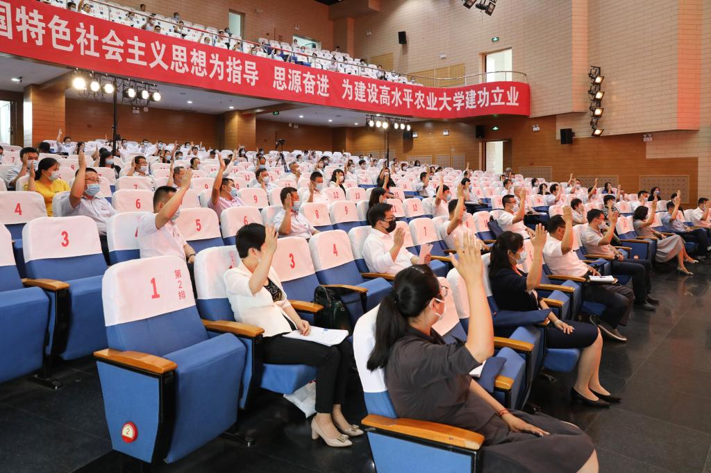 大会号召,全校教职工和工会会员要更加紧密地团结在以习近平同志为核心的党中央周围, 深入学习习近平新时代中国特色社会主义思想,在校党委的坚强领导下,继续发扬天农精神,全面贯彻落实第二次党代会精神,以立德树人为根本,以强农兴农为己任,凝心聚力,“思源”奋进,为建设特色鲜明、优势突出的高水平农业大学再立新功!(文字:工会 姚磊;摄影:陈卫东)