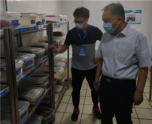 孙守钧先后来到清真餐厅、天骄餐厅、聚贤餐厅,并对食堂主副食操作区、炒菜机器人加工区、主副食库房区、售餐区、二次更衣间、食品快检室等重点区域进行了实地检查。每到一处,孙守钧都详细查看疫情防控期间食品安全管理责任的落实情况,认真查阅食品原材料快检室的食材检测记录,并详细了解食品加工流程,查看食品留样、工具消毒、食堂通风、员工晨检等记录情况,特别是针对食堂的进出口识别码扫描、窗口排队取餐、单人单桌就餐、环境保洁消毒等工作做了重点检查,并对存在的问题提出了整改意见。