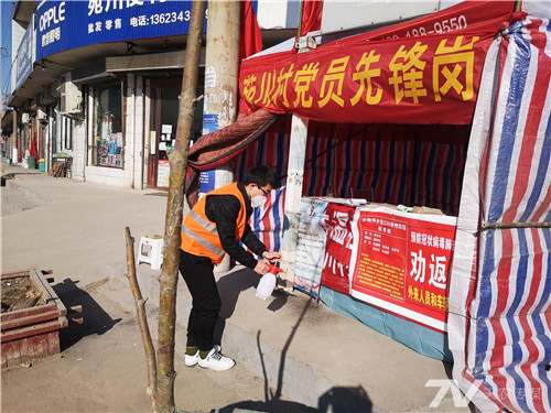 作为一名共青团员,刘娇阳选择了去县城人最多的美锦大街,主要工作是每天检查来往车辆,对外来人员和车辆进行登记,对进出人员测量体温、进行手部消毒,并发放防控疫情宣传单等。虽然工作量大,但是她却一点都不觉得累。