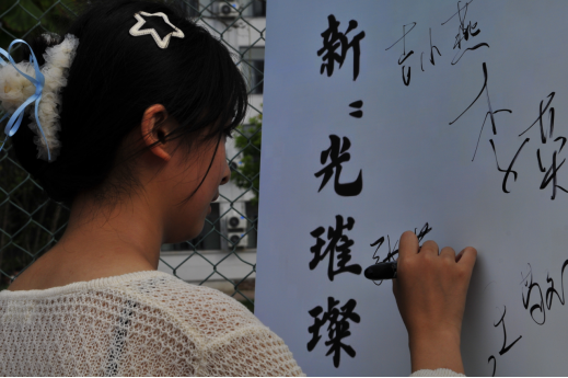 报到当天,为新生制作“人文新‘声’说”留念视频,推出“用书法写下新生心愿,完成大学第一张作品”的特色书法活动,让人文新生感受中华文化的魅力。设置新生才艺表演环节,民族舞、古典舞、现代舞、歌曲演唱,每一位新生在此尽情展现自我。在互动环节中,设置校史校情问答、本科教育教学审核评估问答、互动小游戏等,融入天农文化。