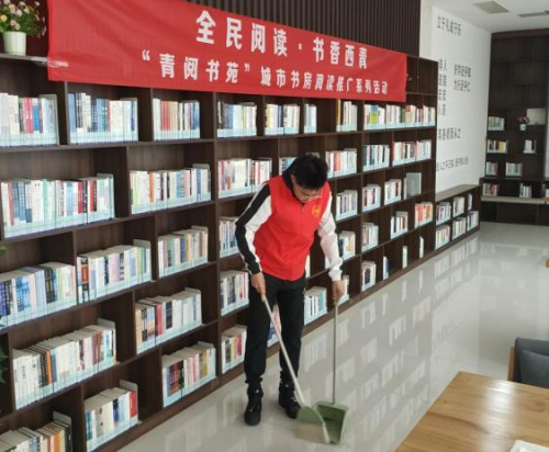 会后,大家开展了“图书整理我行动,志愿精神留书香”志愿服务活动。同学们与社区工作人员一同整理书架书籍、打扫书房卫生,为社区书房营造出良好的阅读氛围。